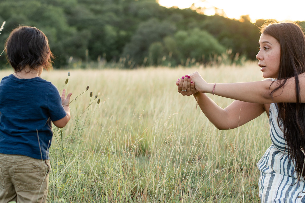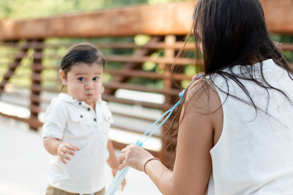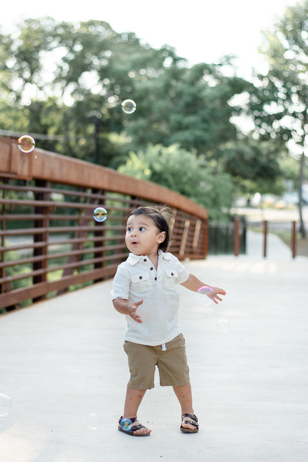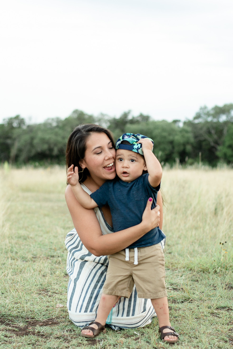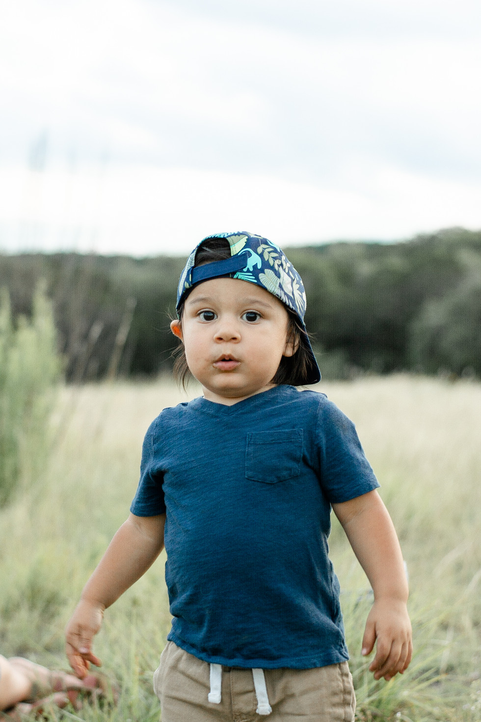 We met at a Shell Gas Station close to their house and headed toward small town Helotes. Vinny had a birthday recently so I brought a bag of goodies he would enjoy. Little did I know they would be used during the session. One of the first things he pulled out of the bag were the bubbles. Alyssa said they had a bubble machine at home so he was very familiar with them. After seeing the bubbles, not much else mattered and Alyssa quickly opened the bottle and watched her son gleam as the bubbles flew by him. Talk about some facial expressions! With the biggest 2 year old eyes, he kept me laughing with the faces he would make.